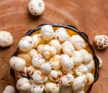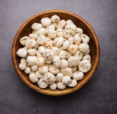 Fox nuts, also known as Makhana or lotus seeds, are a traditional superfood enjoyed in India for centuries. These small, white puffs come from the seeds of the lotus flower and are naturally light, crunchy, and nutritious.